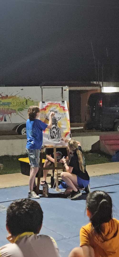 Following lunch, swim, siesta, and supper we headed to the community of Uman where we met with Pastor Josue and did our program for the local children there. We have done the same program multiple times this week for different churches. When doing our program we start with playing games with the kids. Then we sing a choreographed song, preform a drama and puppet show, chalk art, memory verse and magic trick that explains the story of Abraham and Isaac and the Greatest commandment (Mark 12:30), We then did a craft.
