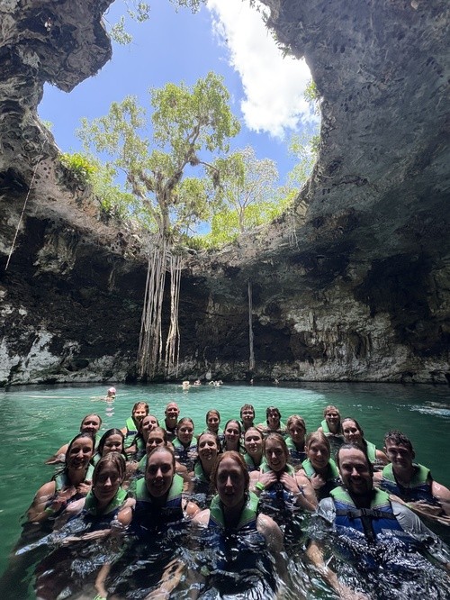 Today was a rest day for our team. We started off the morning with a drive to the Santa Barbara Cenote in Homun (about an hour from our hotel), where we enjoyed swimming and taking in the beauty of God's creation. From there we went onto the Hacienda Teya, a Mexican Hacienda built in 1683. Here we enjoyed the beautiful buildings on the property and learned a little bit about what life was like at the time it was built and the history of the Sisal (Hennequen) industry. Soon after this we came back to Merida to participate in some exploration and shopping in Centro. Throughout the entire day we had the opportunity to see the beauty in the Mexican people and got to see first hand how vast God's creation is; both in the gorgeous landscape and the difference in people and cultures.