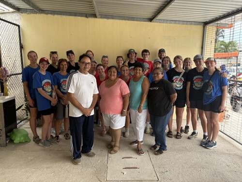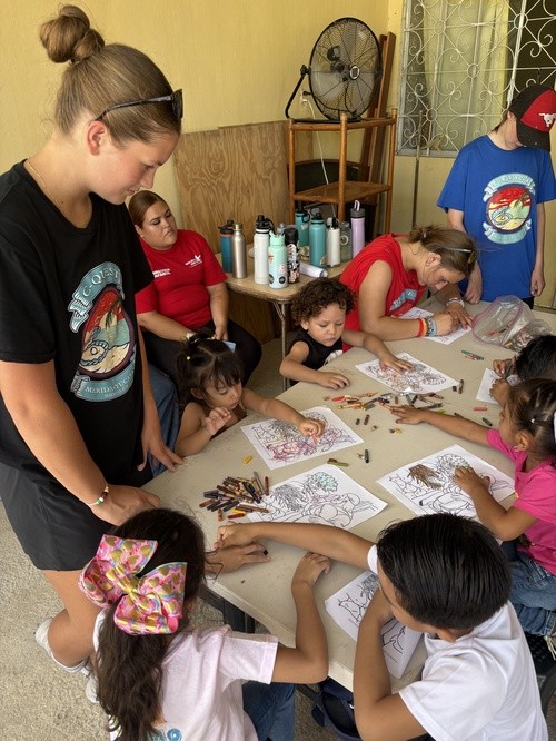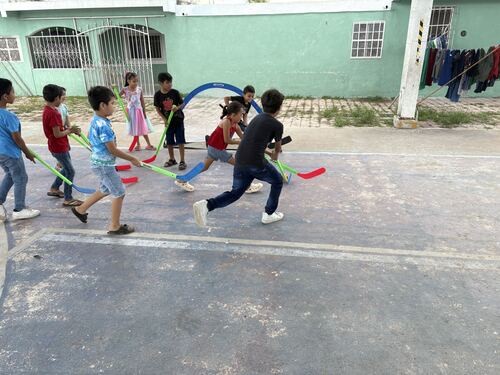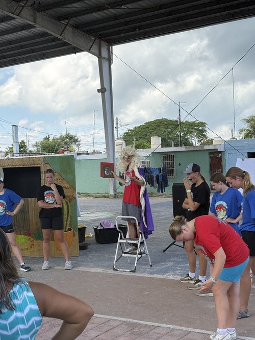 This morning we had the opportunity to serve with a team in Flamboyanes. This is a small, poor town between Progreso and Merida. We went to a covered outdoor sports court where we played with a parachute, hula hoops, and taught them some street hockey. Following the games we led them in some songs before continuing on with the rest of our program. Once the program finished we walked the kids back to their ministry base where we did a craft with the kids. After the craft we served the kids food and sent them on the their way with their craft, memories, and a gift bag. Following the departure of the kids the staff made us a delicious lunch of tostadas with jamaica juice to drink. After eating we returned to the hotel for a much needed swim/siesta time.