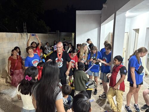 The group recouped and headed to the Cavalry Church where we made bracelets for the evening before heading to Hunucma. Upon arrival the team got right to work in setting up the program items and firing up the BBQ for a big community hot dog dinner. Over 100 hot dogs were eaten and many more pieces of watermelon. After eating the team put out a valiant last workmanship of the program and got to build more crafts with more kids. The night ended with the handing out of balloon animals and gift bags for the kids.